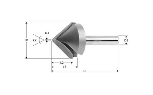 V-bit 135 graden D=19mm, 2.5mm top Schacht=6mm
